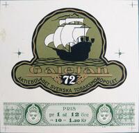 Etikett. Galejan 72, tobak. Svenska Tobaksmonopolet -