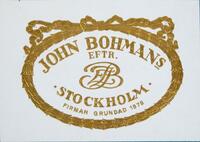 Etikett i relieftryck. John Bohmans Eftr, Stockholm -