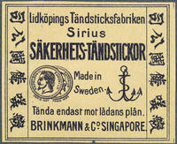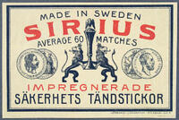 Tändsticksetikett. Sirius säkerhetständstickor -