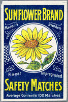 Tändsticksetikett. Sunflower Brand -