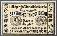 Tändsticksetikett. Brinkmann & Co Singapore -