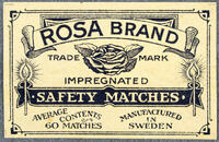 Tändsticksetikett. Rosa Brand -