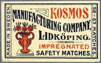 Tändsticksetikett. Lidköpings tändsticksfabrik. Kosmos -