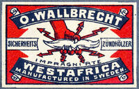Tändsticksetikett. O. Wallbrecht. Westafrica. -