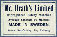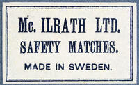 Tändsticksetikett. Mc. Ilrath Ltd. Safety matches -